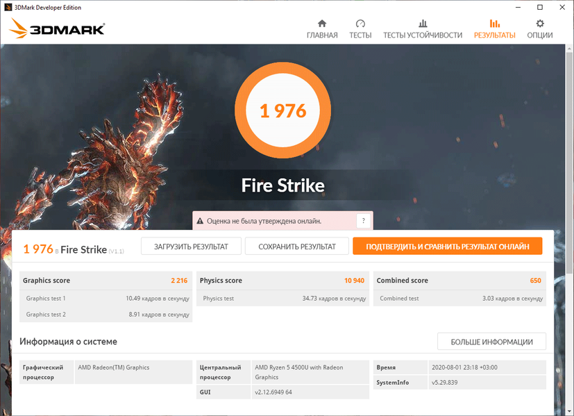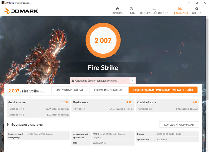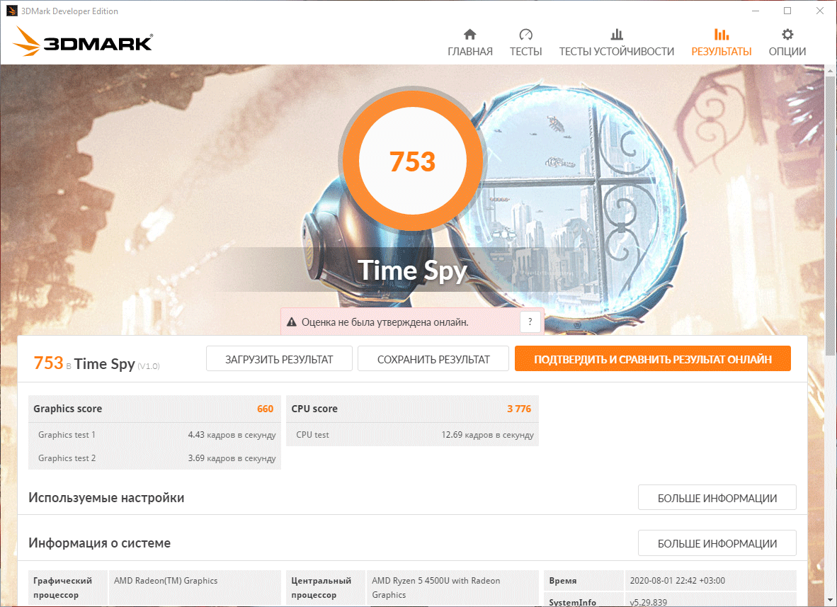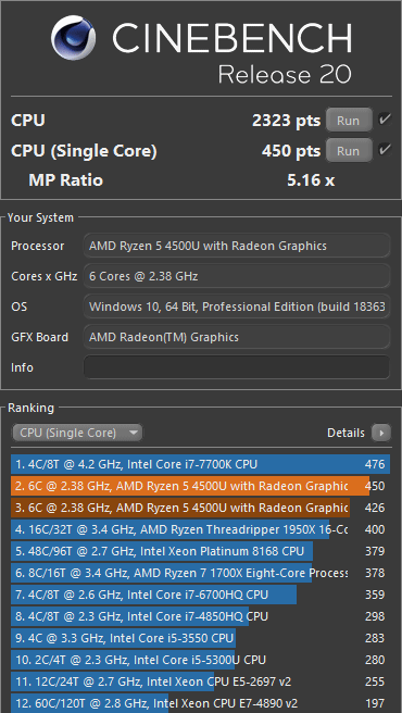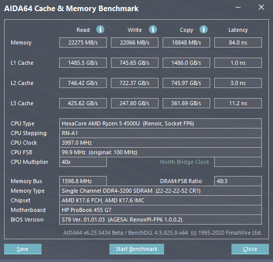 | Тест | Референсный результат | HP ProBook 455 G7 (AMD Ryzen 5 4500U) |