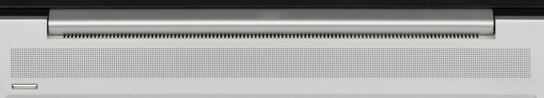 За ней видна длинная перфорированная панель — в отдельных ее зонах встроены два стереодинамика.