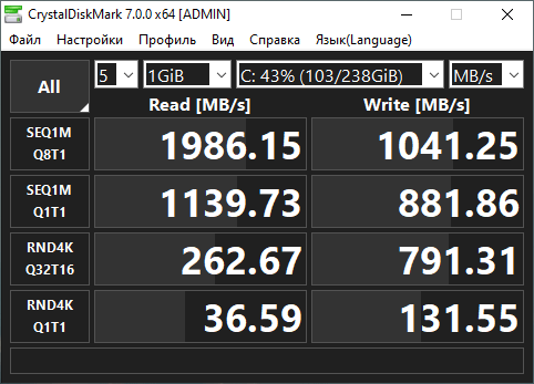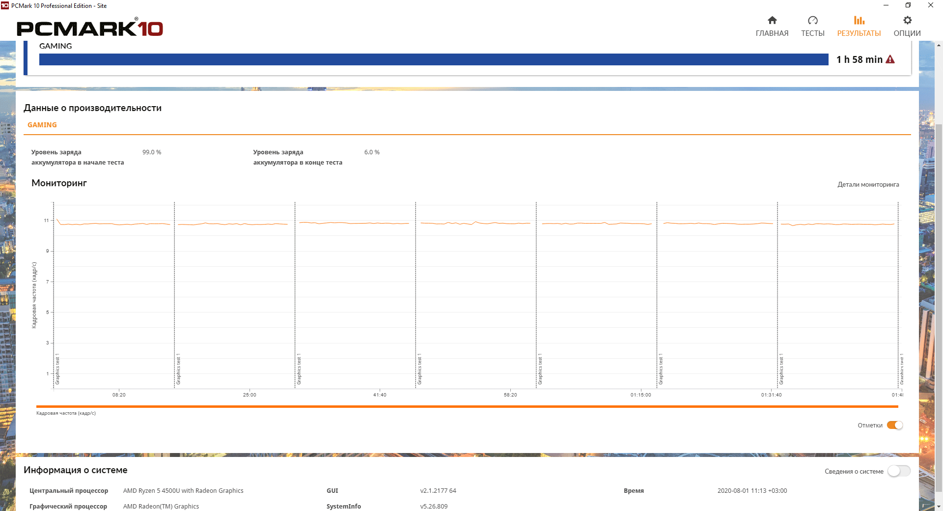 Теперь в нескольких бенчмарках протестируем производительность HP ProBook 455 G7 в двух режимах: от адаптера питания и от аккумулятора.