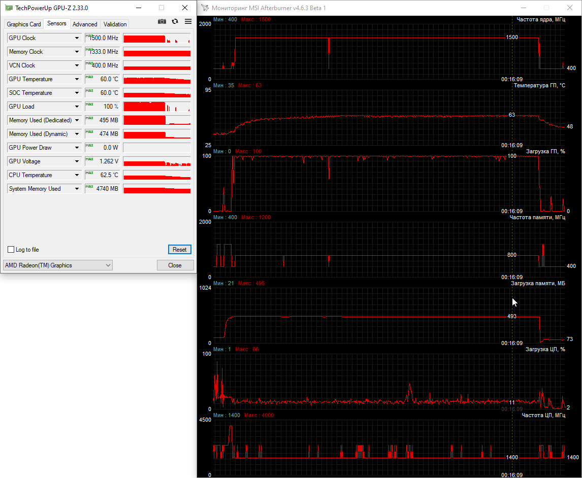 Для мониторинга использовались утилиты GPU-Z и MSI Afterburner.
