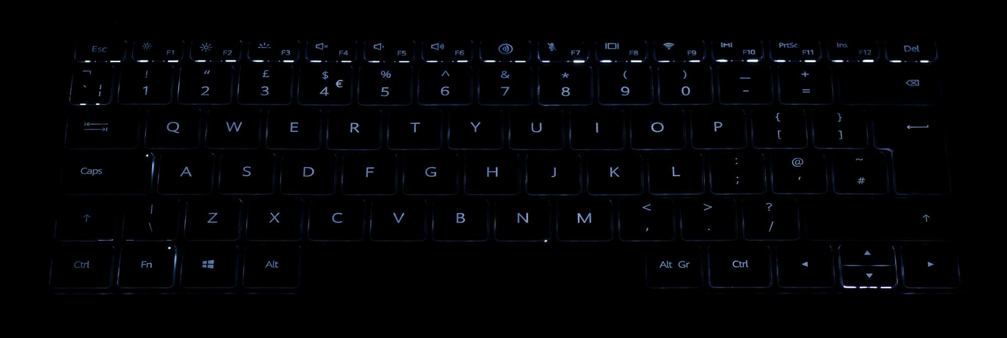 Ход клавиш равен 1,5 мм. Срабатывания хорошо ощущаются, хотя нажатие происходит очень тихо.
