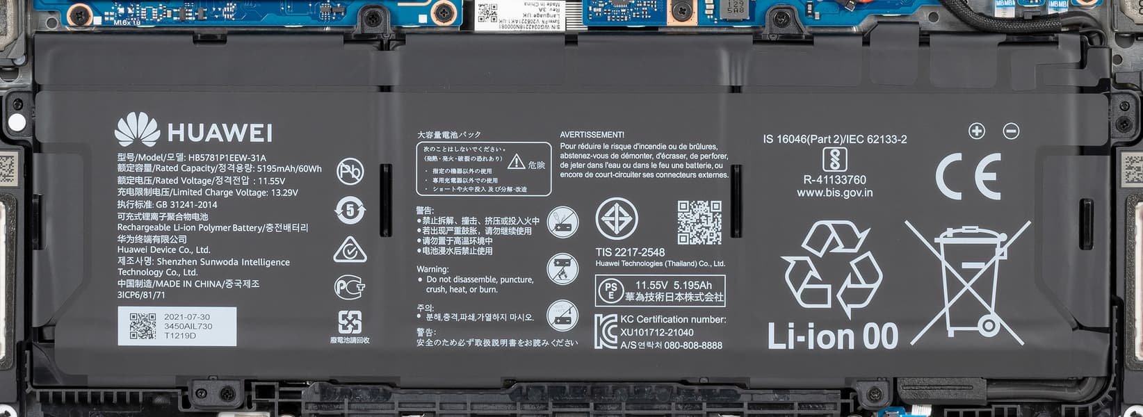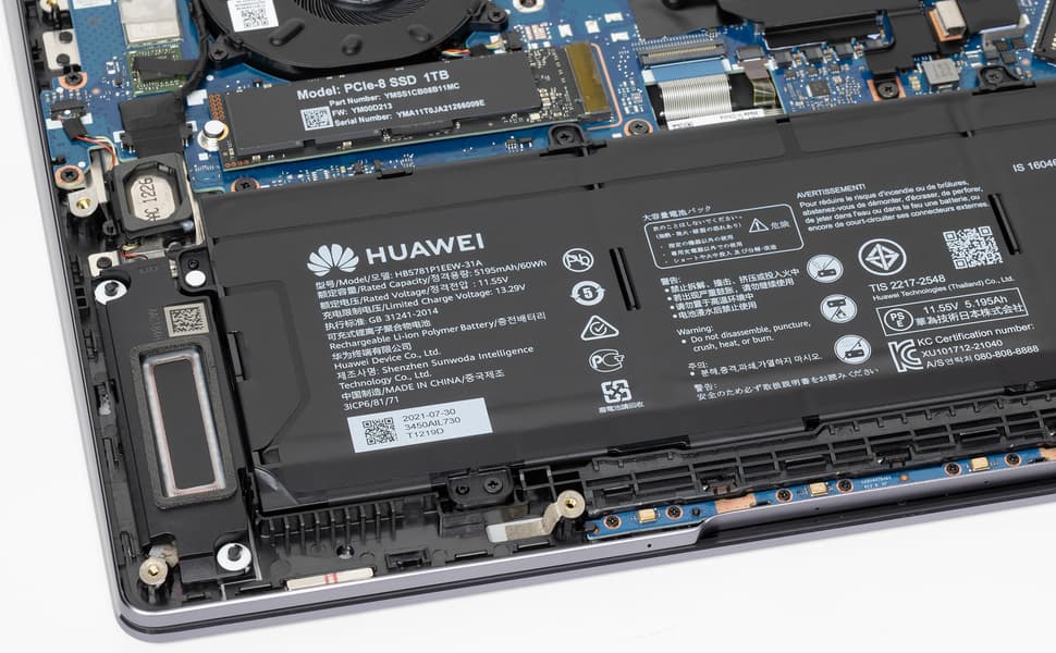 Очередным изменением нового Huawei MateBook 14s в сравнении с MateBook 14 2021 стало увеличение емкости литий-полимерного аккумулятора с 56 Вт·ч до 60 Вт·ч.