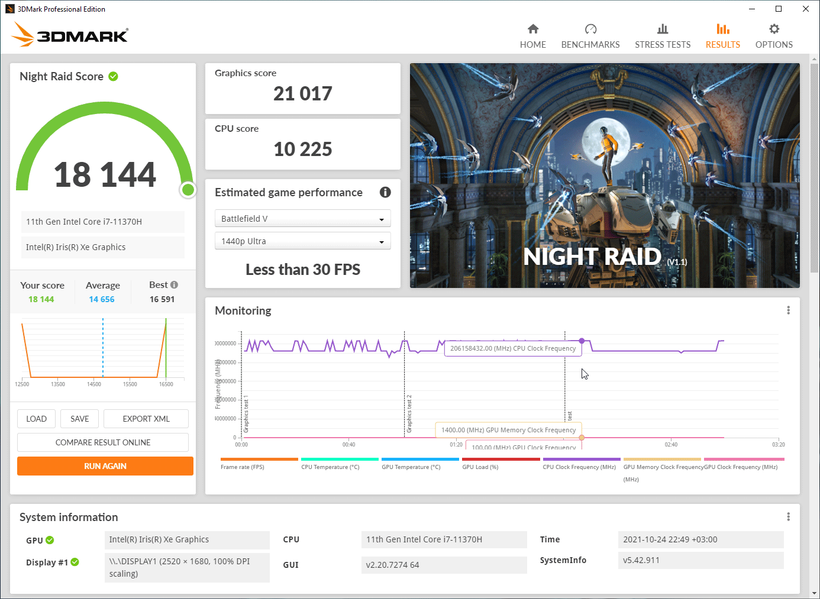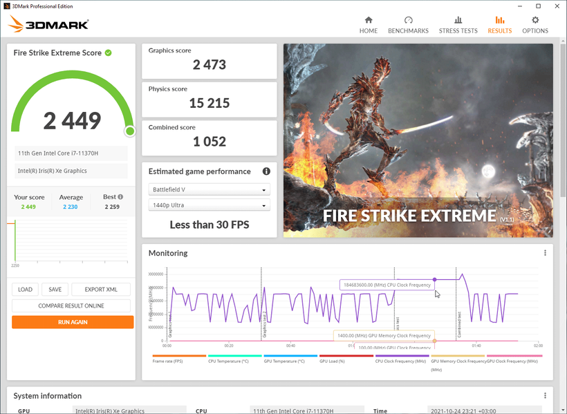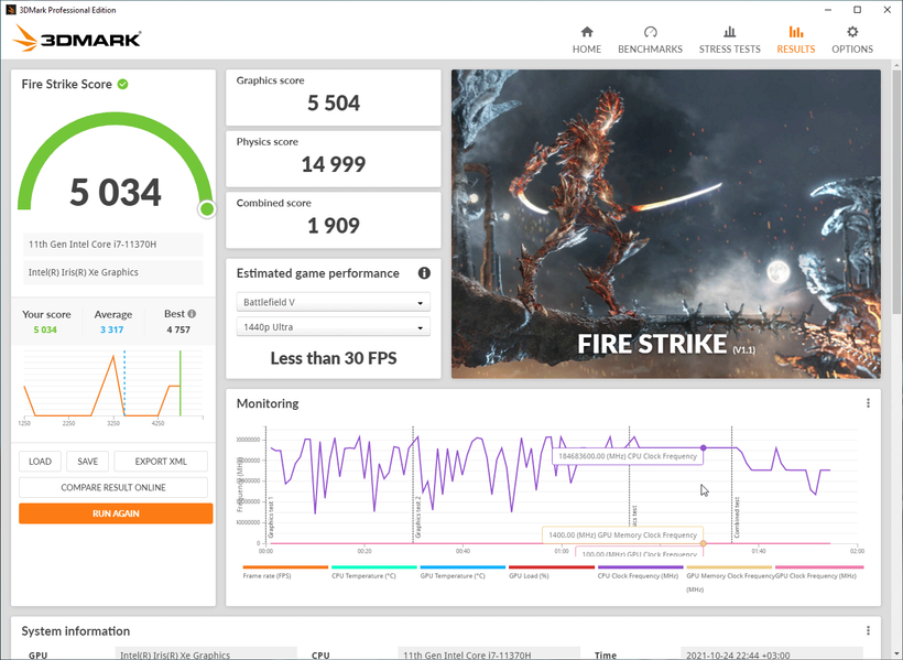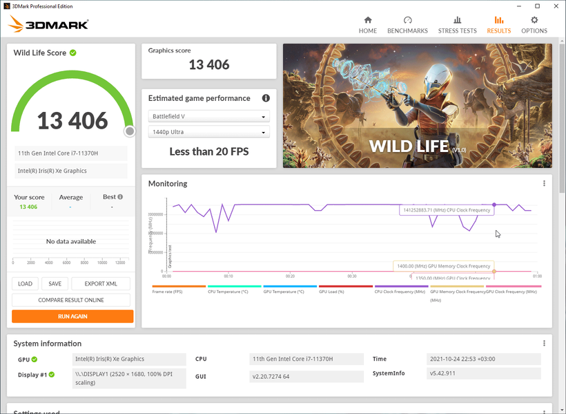 Кроме этого, мы приводим результаты тестирования встроенного в процессор графического ядра Intel Iris Xe в 3D-бенчмарке 3DMark и паре игр.