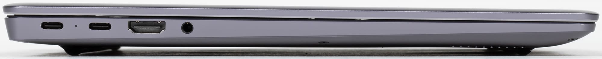 Все порты традиционно размещены на боковых торцах. Слева выведены два USB 3.2 Gen1 Type-C интерфейса Thunderbolt 4 с поддержкой зарядки и DisplayPort, а также видеовыход HDMI 2.0 и универсальный миниджек для микрофона/наушников.
