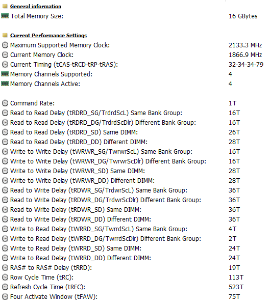 | Оперативная память | 16 ГБ LPDDR4x-4266 МГц (распаяна на плате), четырехканальный режим, тайминги 32-34-34-79 CR1 | |