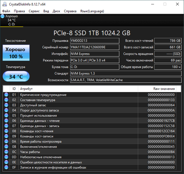 | Накопитель | 1 × SSD 1 ТБ, M.2 2280, NVMe, PCIe 3.0 x4 | |