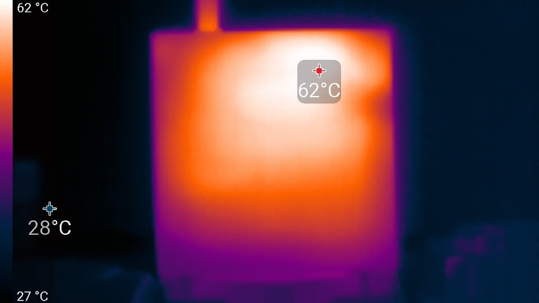 Под максимальной нагрузкой работать с клавиатурой комфортно, так как места под запястьями едва нагреваются. Однако держать ноутбук на коленях неприятно, поскольку колени ощущают нагрев днища ноутбука. Блок питания греется очень сильно, поэтому при долговременной работе с большой производительностью лучше следить, чтобы он не был ничем накрыт.