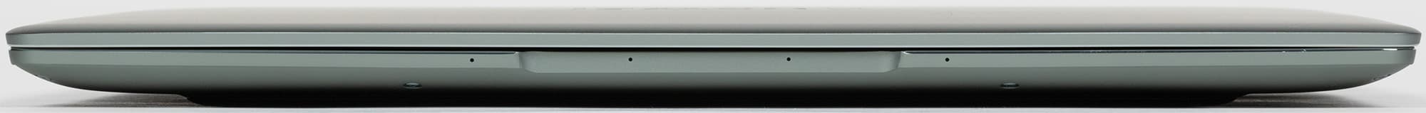 Конфигурация нижней панели также не претерпела изменений: на ней можно найти сдвоенную вентиляционную решетку системы охлаждения, две маленьких решетки акустики по бокам, а также пару длинных резиновых ножек.
