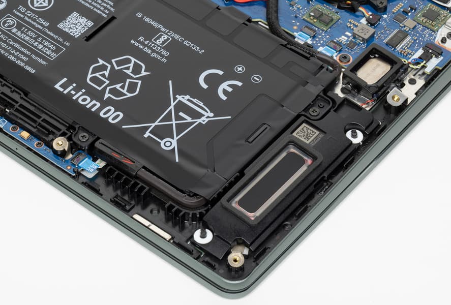 Аккумулятор в Huawei MateBook 14s образца 2022 года остался емкостью 60 Вт·ч (5195 мА·ч). По всей видимости, в этих габаритах более емкий аккумулятор уже не уместить (либо это будет слишком дорого).