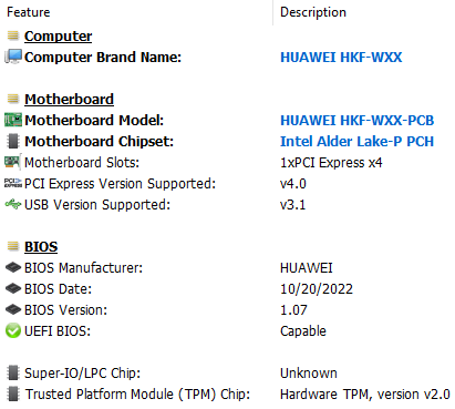 | Прочие особенности | алюминиевый корпус встроенный датчик Huawei Share (NFC) кнопка питания со встроенным сканером отпечатков пальцев Huawei PC Manager производительный или сбалансированный режимы работы | |