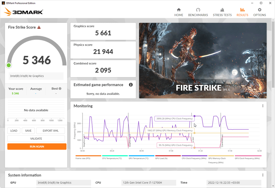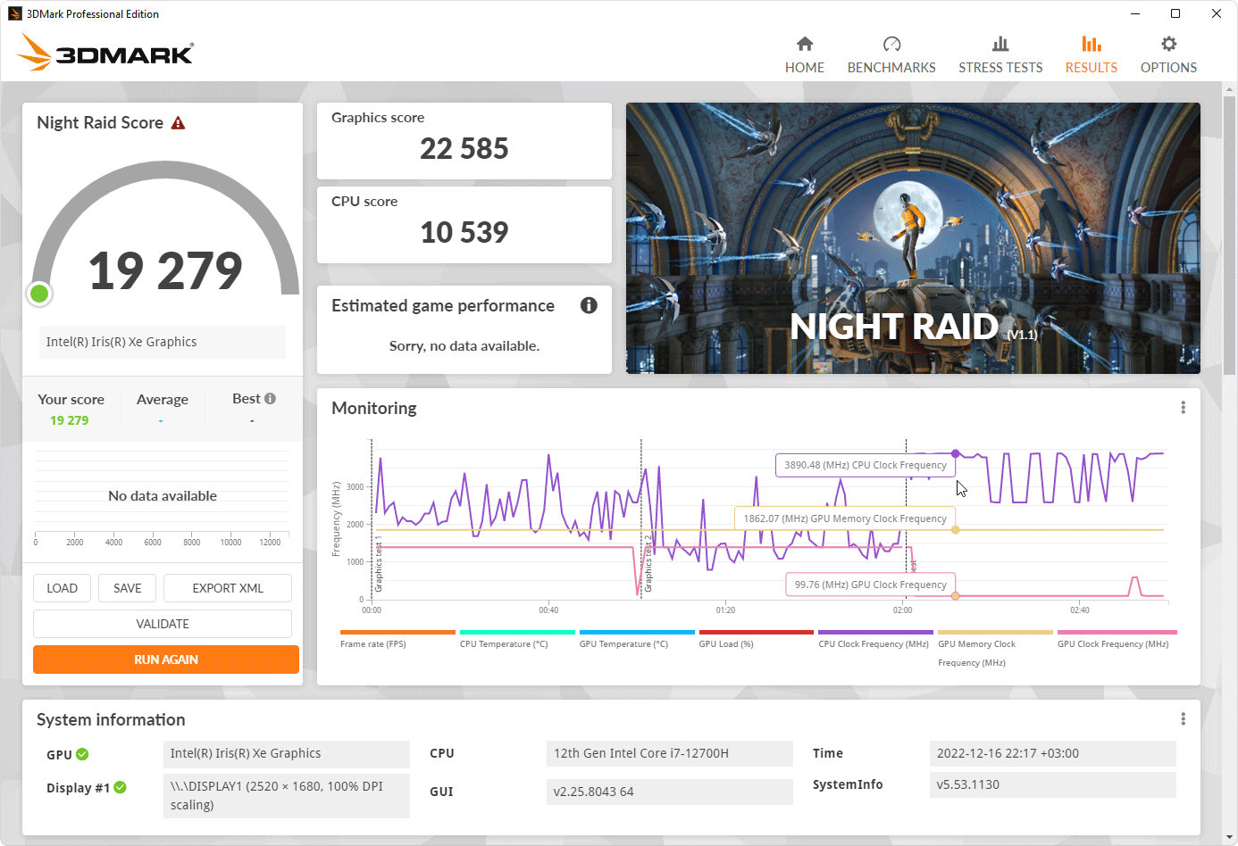 В дополнение мы приводим результаты тестирования встроенного в процессор графического ядра Iris Xe в 3D-бенчмарке 3DMark и одной игре.