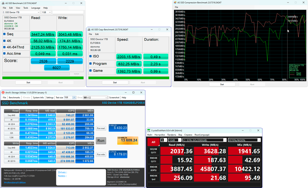 Производительность SSD в очередной раз возросла, причем в некоторых тестах довольно заметно. Далее мы приведем результаты тестирования накопителя как при работе ноутбука от электросети в производительном режиме, так и при работе от аккумулятора в сбалансированном режиме.