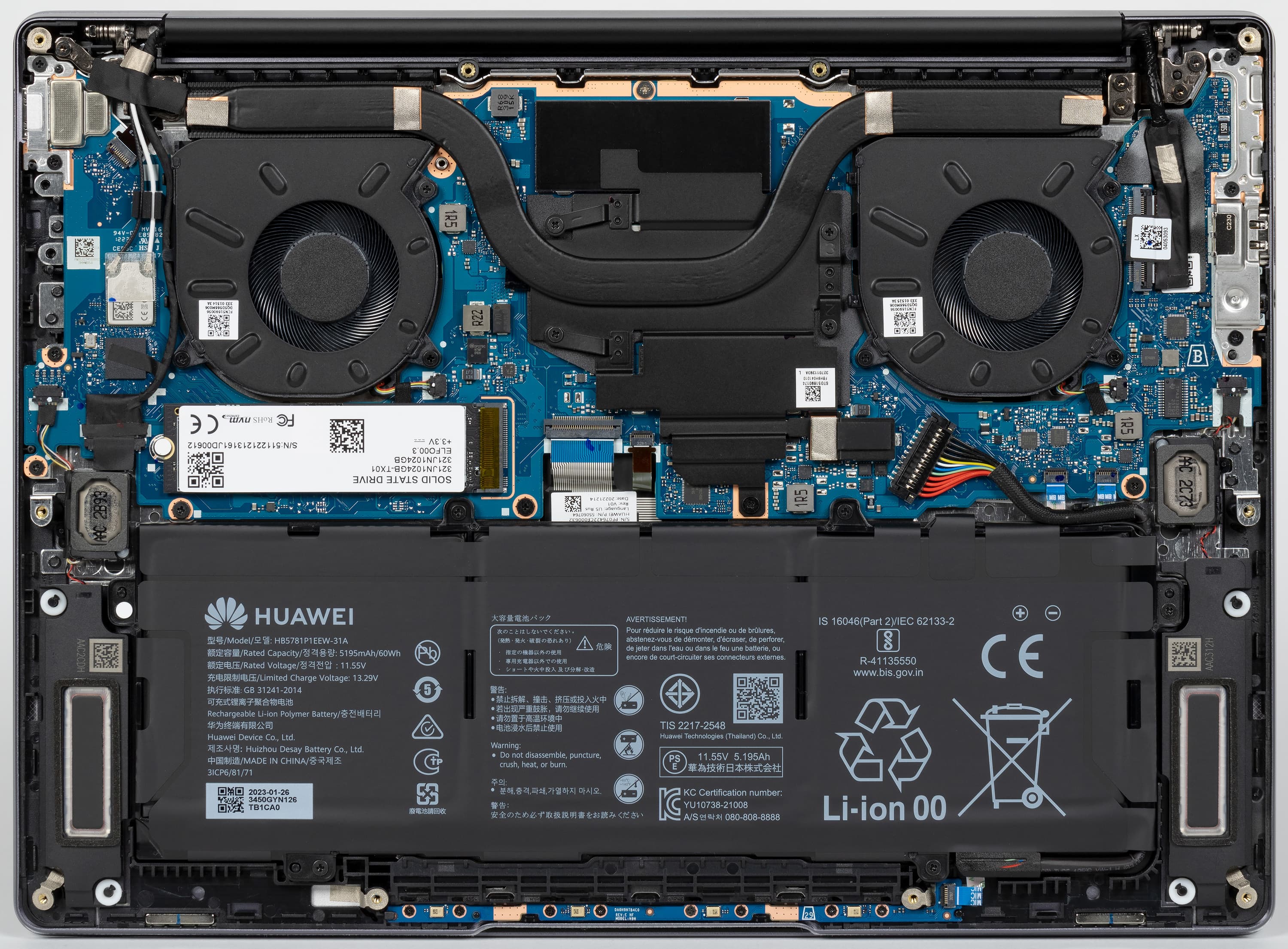 Емкость аккумулятора Huawei MateBook 14s 2023 не изменилась и составляет 60 Вт·ч (5195 мА·ч).