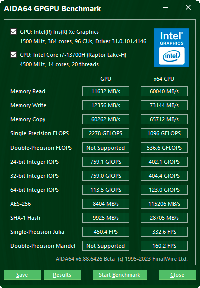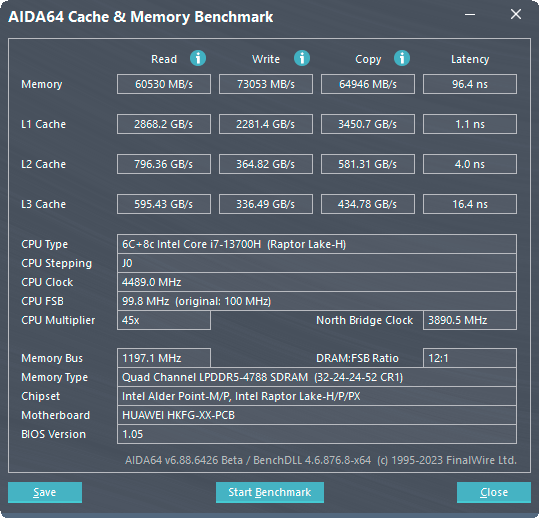 | Тест | Референсный результат (Intel Core i5-9600K) | Huawei MateBook 14s 2023 (HKFG-X) (Intel Core i7-13700H) | Huawei MateBook 14s 2022 (HKF-X) (Intel Core i7-12700H) | Huawei MateBook X Pro 2023 (MRGFG-X) (Intel Core i7-1360P) |