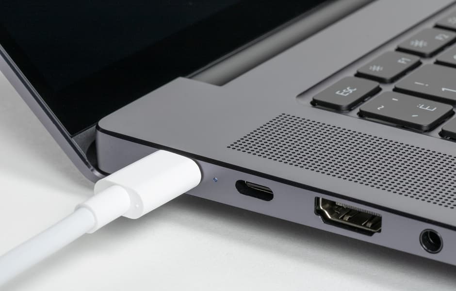 Набор портов — достаточный и современный. Здесь два разъёма USB Type-C и два USB Type-A (его принято называть «обычным»), оба с интерфейсом USB 3.2 Gen 1. Плюс есть полноразмерный HDMI и аудиоразъём. Оба USB Type-C подходят для зарядки и для вывода видео.