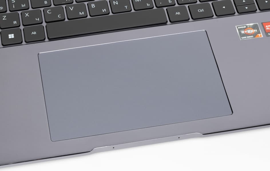 Тачпад большой, очень большой. Вообще, удивительно, какими крохотными тачпадами до сих пор приходится пользоваться владельцам многих недорогих ноутбуков, при том, что это далеко не самый дорогой компонент. Huawei говорит, что тачпад MateBook 16 увеличен на 46%, но это какое-то лукавство: увеличен он по сравнению с 14-дюймовым MateBook 14. Зачем эти приёмчики, если тачпад в самом деле огромный? В общем, не обижайтесь на маркетологов, их занесло.