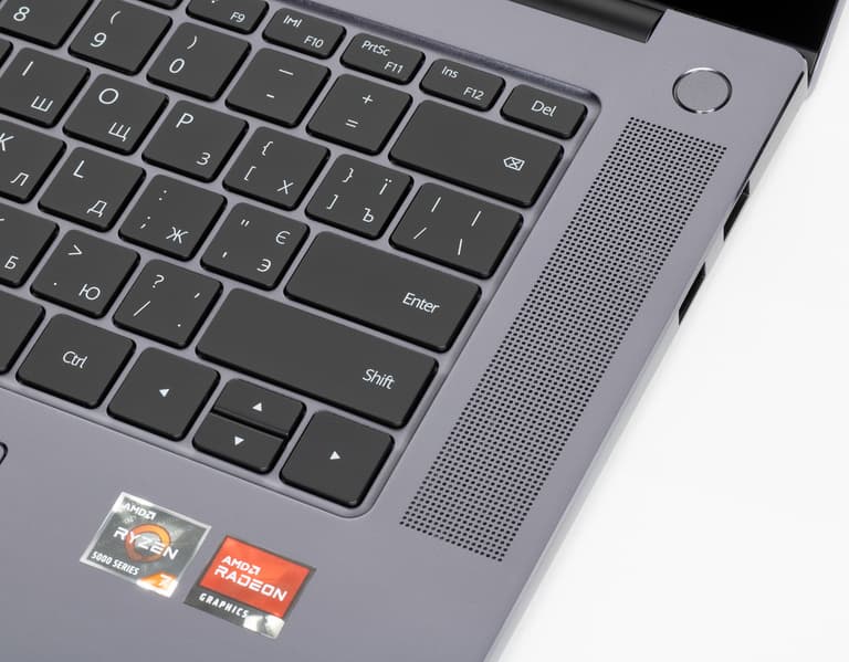 Huawei MateBook 16 оснащен аудиопроцессором Realtek и двумя стереодинамиками мощностью по 2 Вт, расположенными под сетками по бокам от клавиатуры.