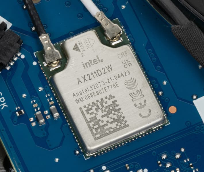 | Беспроводная сеть Wi-Fi | Wi-Fi 6E (AX211D2W, 802.11ax, 2×2 MIMO, 2,4/5/6 ГГц, 160 МГц) | |