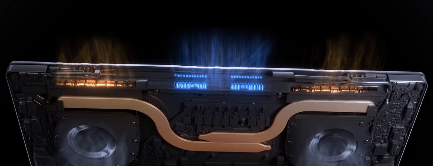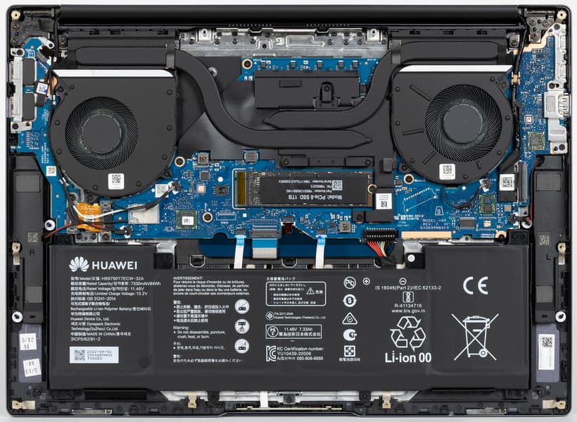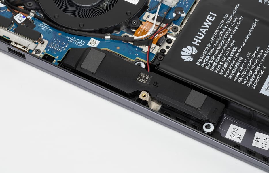 Поскольку теперь у Huawei MateBook 16s более производительная аппаратная платформа, то разработчикам потребовалось повысить эффективность системы охлаждения. Сделано это за счет замены двух сквозных 6-миллиметровых тепловых трубок на две индивидуальные 8-миллиметровые.