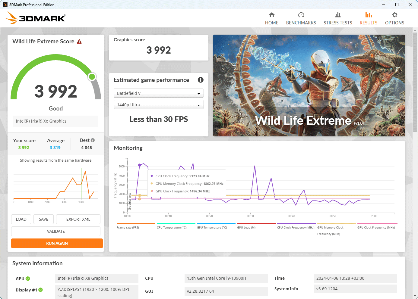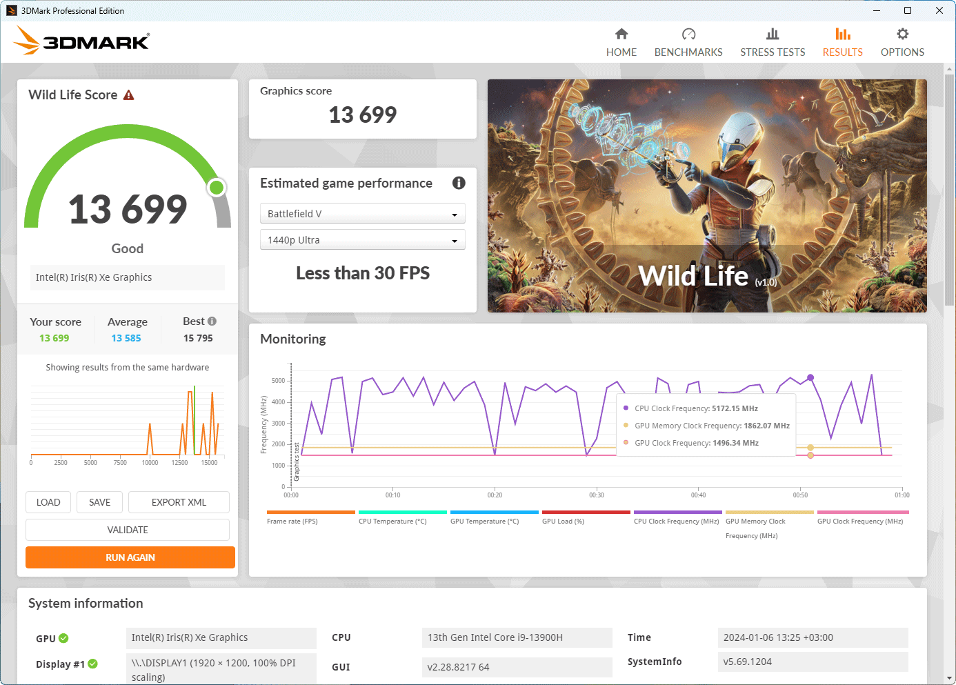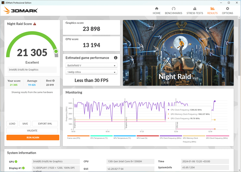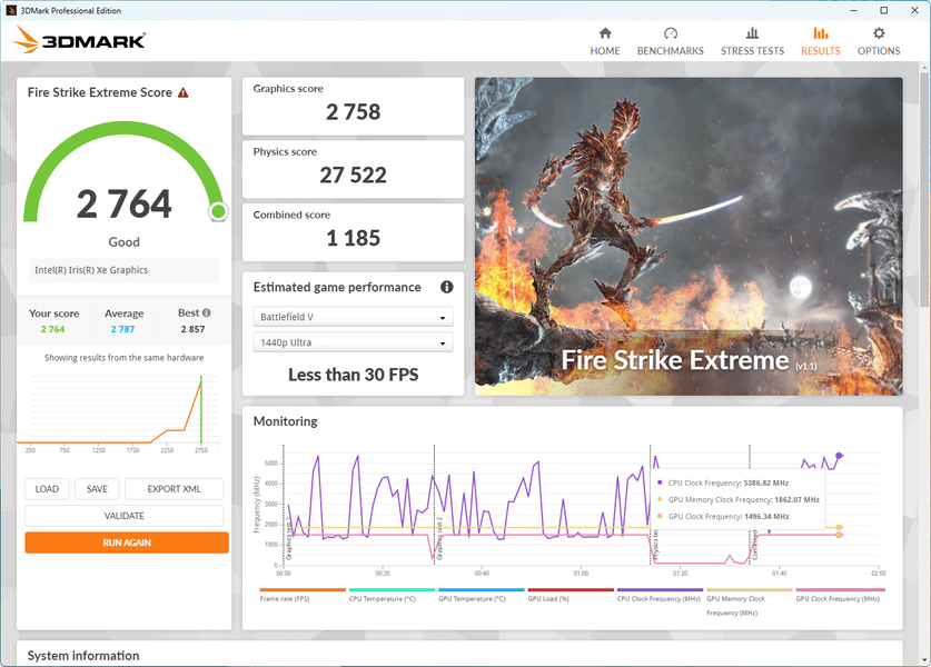 Что касается производительности встроенного в процессор графического ядра, то результаты тестов Iris Xe в бенчмарках 3DMark вы можете увидеть прямо на скриншотах.