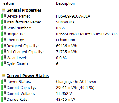 Еще интереснее тот факт, что по данным трех диагностических утилит полная емкость аккумулятора у нашего экземпляра Huawei MateBook D 16 2024 оказалась еще выше и составила 71,7 Вт·ч.
