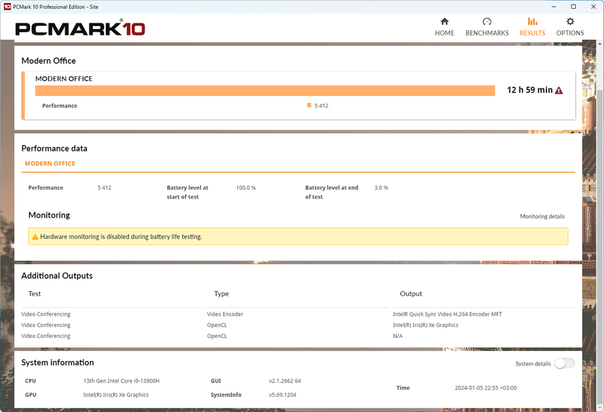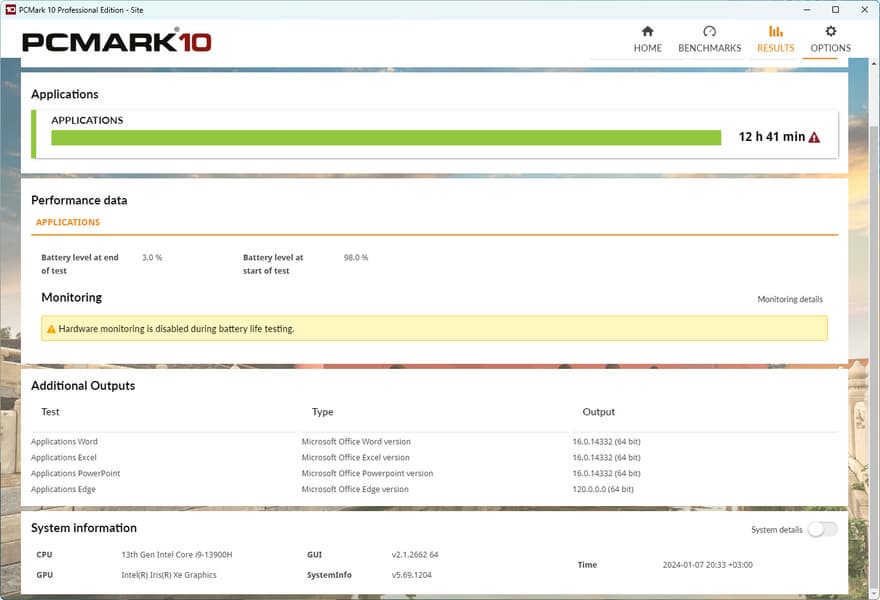 И еще небольшой бонус-дополнение к тестам автономности ноутбука. Мы провели два экстремальных теста PCMark’10: