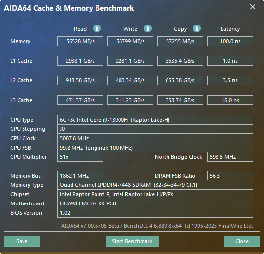 | Тест | Референсный результат (Core i5-9600K) | Huawei MateBook D 16 2024 MCLG-X (Core i9-13900H) | Huawei MateBook D 16 2023 RLEFG-X (Core i9-13900H) | Huawei MateBook X Pro 2023 MRGFG-X (Core i7-1360P) |