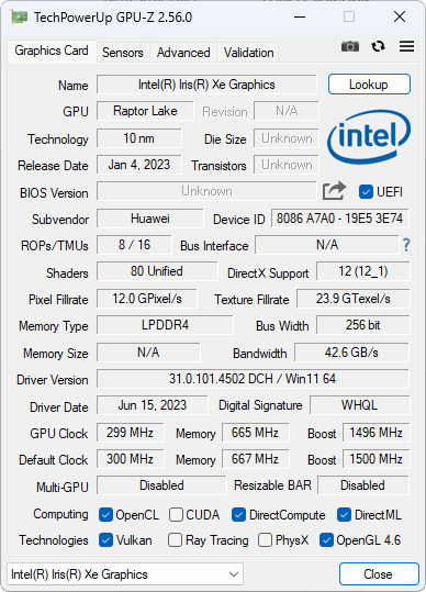 | Видеоподсистема | интегрированная графика Iris Xe, 1,5 ГГц (80 блоков) | |