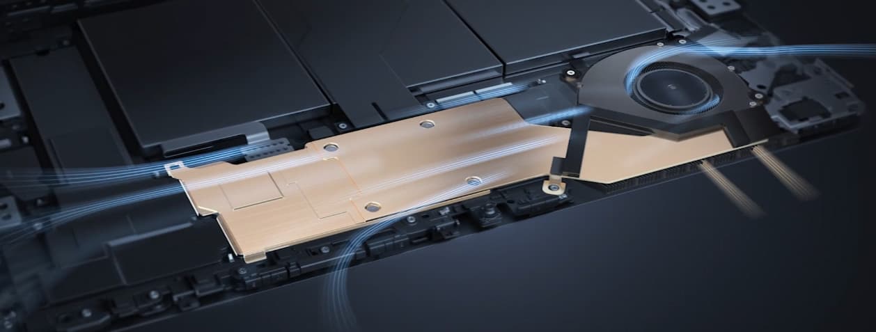 Удивительно, как инженерам Huawei удалось разместить в тонком MateBook E 2023 систему охлаждения с испарительной камерой и вентиляторами с тончайшими лопастями Shark Fin, и еще более удивительно, что в сравнении с моделью 2022 года заявлено 40-процентное увеличение площади радиатора системы охлаждения и 25-процентное увеличение области скрытых вентиляционных отверстий.