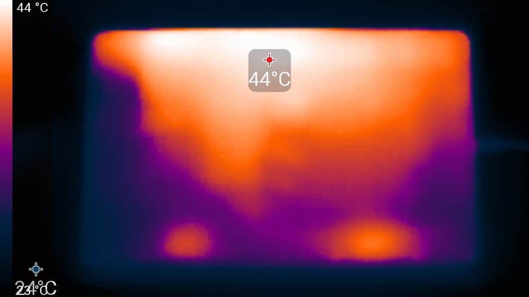Ниже приведены термоснимки, полученные после долговременной работы устройства под максимальной нагрузкой на CPU и GPU (профиль Производительность):