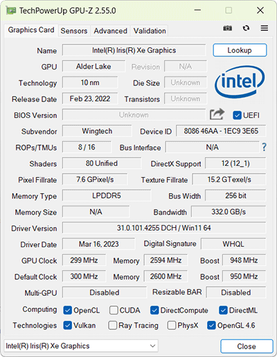 Замена процессора принесла в ноутбук-планшет графическое ядро Intel Iris Xe с 80 исполнительными блоками, однако его частота здесь в Boost-режиме составляет скромные 0,95 ГГц.