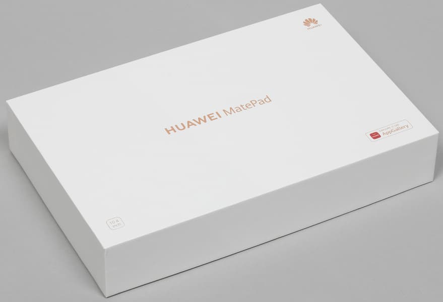 Упаковка MatePad выглядит практически так же, как и у более старых моделей. Белая коробка с названием устройства по центру — и никаких фотографий.