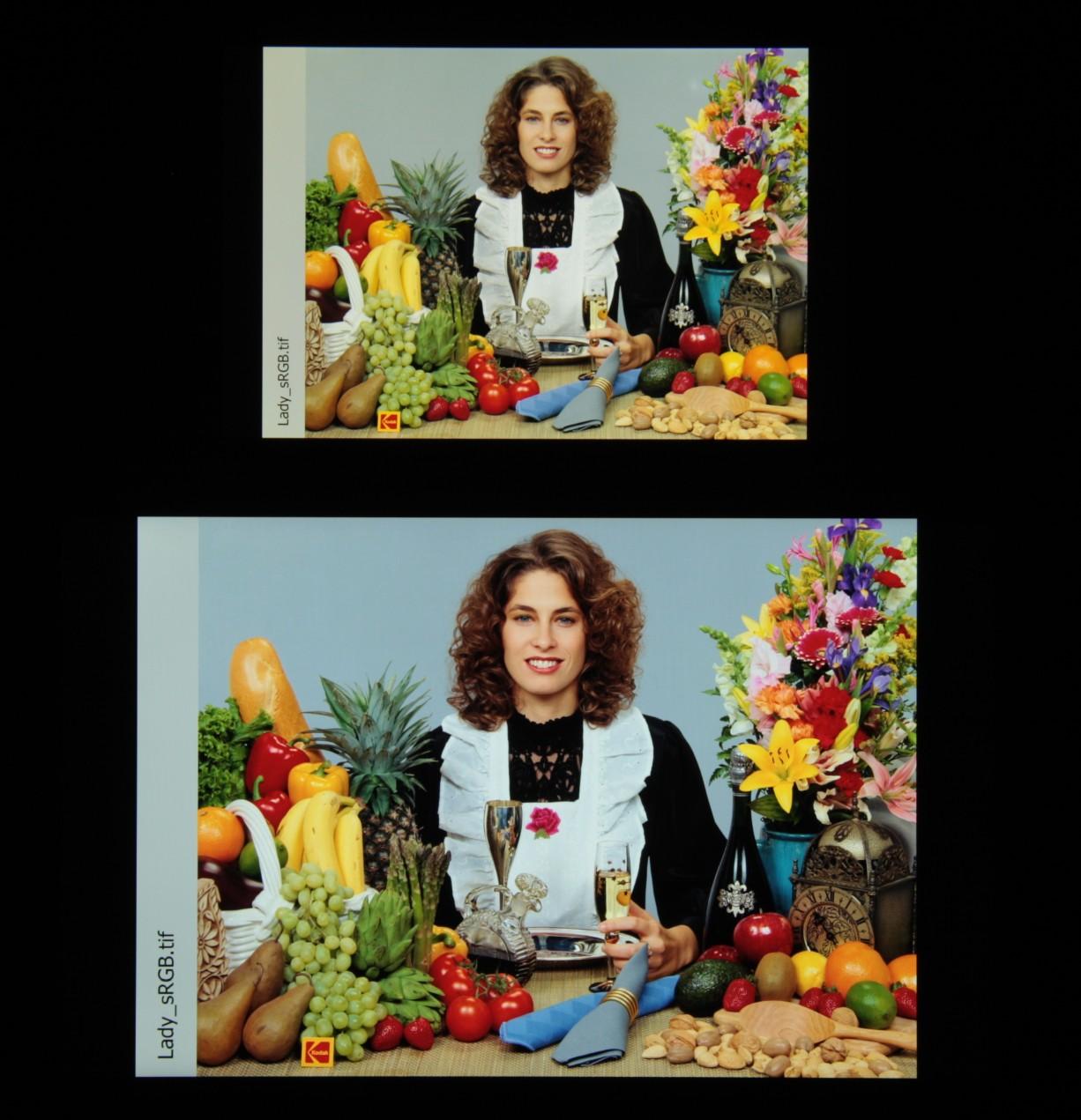 При сильном изменении условий освещенности подстройка цветового баланса выражена слабо, поэтому с нашей точки зрения эта функция не работает так, как нужно. Отметим, что сейчас сложившимся стандартом является калибровка устройств отображения к точке белого в 6500 К, но в принципе, коррекция под цветовую температуру внешнего света может принести пользу, если хочется добиться лучшего соответствия изображения на экране с тем, что видно на бумаге (или на любом носителе, на котором цвета формируются за счет отражения падающего света) в текущих условиях.