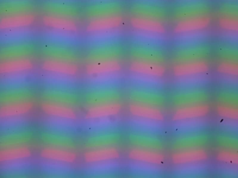 В данном планшете используется матрица типа IPS. Микрофотографии демонстрируют типичную для IPS структуру субпикселей: