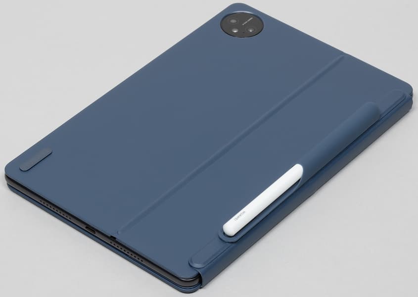 Более того, в этой же коробке мы обнаружили держатель для стилуса (который поставляется отдельно). Держатель со стилусом примагничивается к спинке обложки, а она, в свою очередь, защищает спинку планшета.