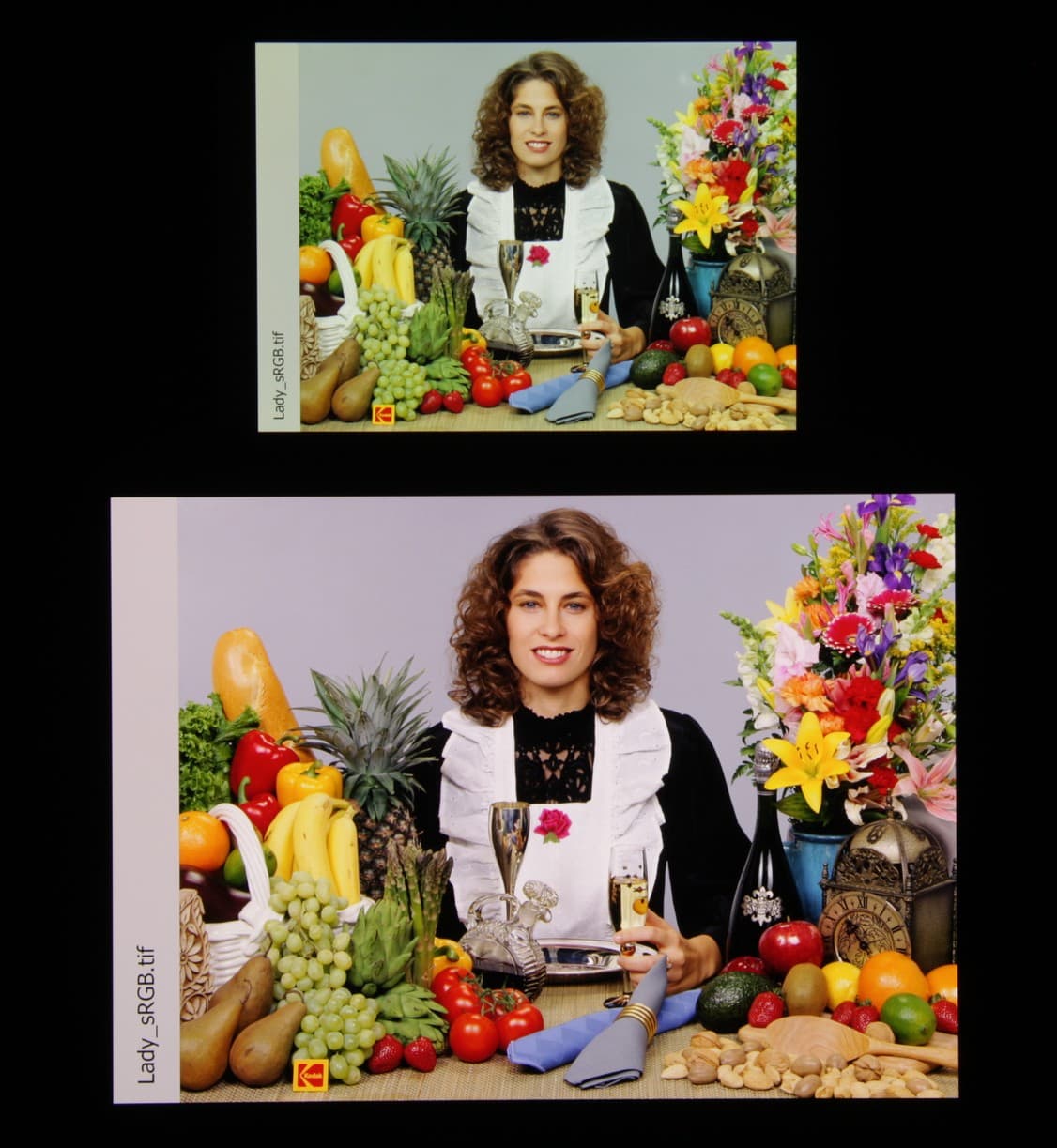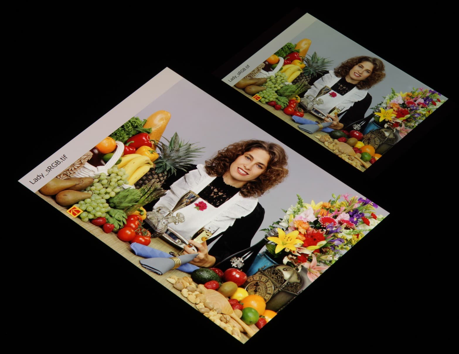 Отметим, что на экранах с широким цветовым охватом (без соответствующей коррекции) цвета́ обычных изображений, оптимизированных для устройств sRGB, выглядят неестественно насыщенными. Отсюда и рекомендация: в большинстве случаев смотреть кино, фотографии и все естественное лучше при выборе профиля Обычные цвета, и только если фотография или видео имеют охват DCI-P3, принятый в цифровом кинематографе, имеет смысл переключить профиль на Яркие цвета.