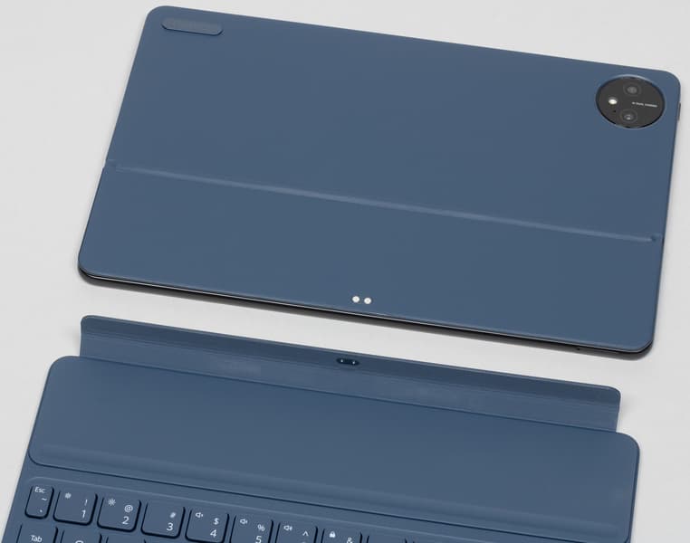 В целом дизайн планшета нас порадовал. Очень тонкая рамка вокруг экрана, красивый цвет тыльной поверхности, здорово выглядящий блок камер — безусловные плюсы. Из минусов — материалы корпуса (и аксессуаров) и отсутствие поддержки карты памяти.