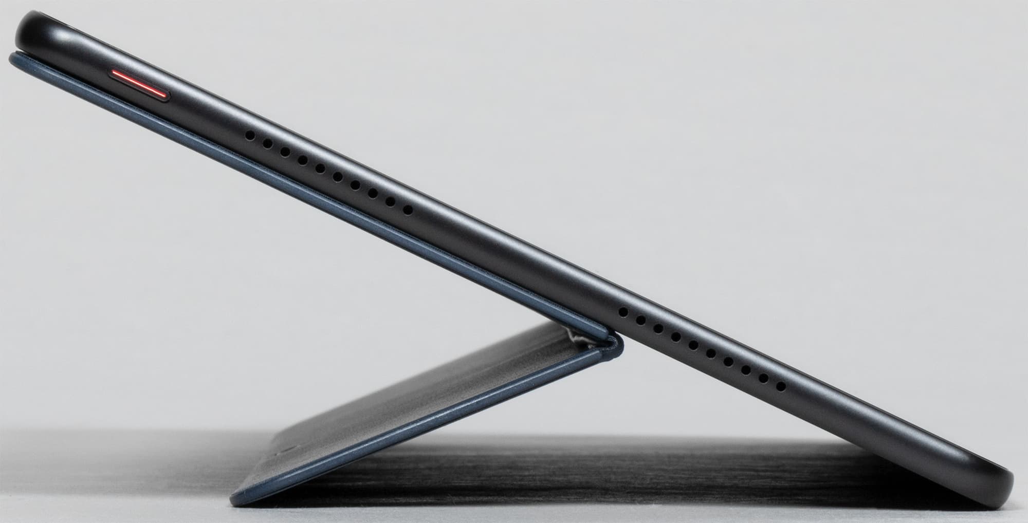 Дизайн самого планшета не оставил нас равнодушными. Главное здесь — очень узкая рамка вокруг экрана. Со всех сторон она одинаковая, и при такой небольшой толщине выглядит это действительно впечатляюще.