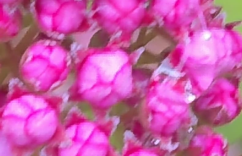 Посмотрите на фрагмент макрофотографии, сделанной на основную камеру с разрешением 50 Мп. Невооруженным глазом видны «лесенки», возникающие, как правило, при искусственном увеличении.