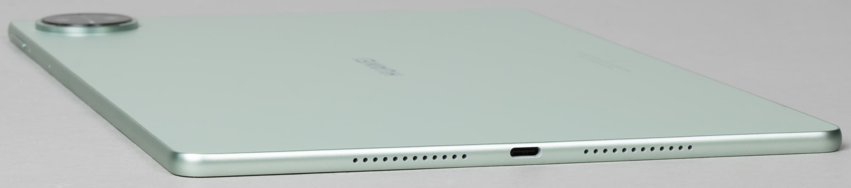 Итак, ничего нового мы про дизайн планшета не скажем, отметим только новый цвет — пожалуй, еще более интересный, чем прошлогодний золотистый. Но главные качества остались неизменными: минимальная толщина, рекордно узкая рамка вокруг экрана (особенно вдоль длинных сторон), быстрый порт USB, удобная кнопка питания, стереодинамики.