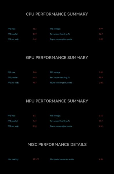 При длительном интенсивном использовании падение производительности может быть заметным, но всё же не чрезмерным и поменьше, чем у предшественника: в среднем до 70%, о чем свидетельствует Burnout Benchmark, нагружающий SoC в течение десяти минут и замеряющий уровень тротлинга.