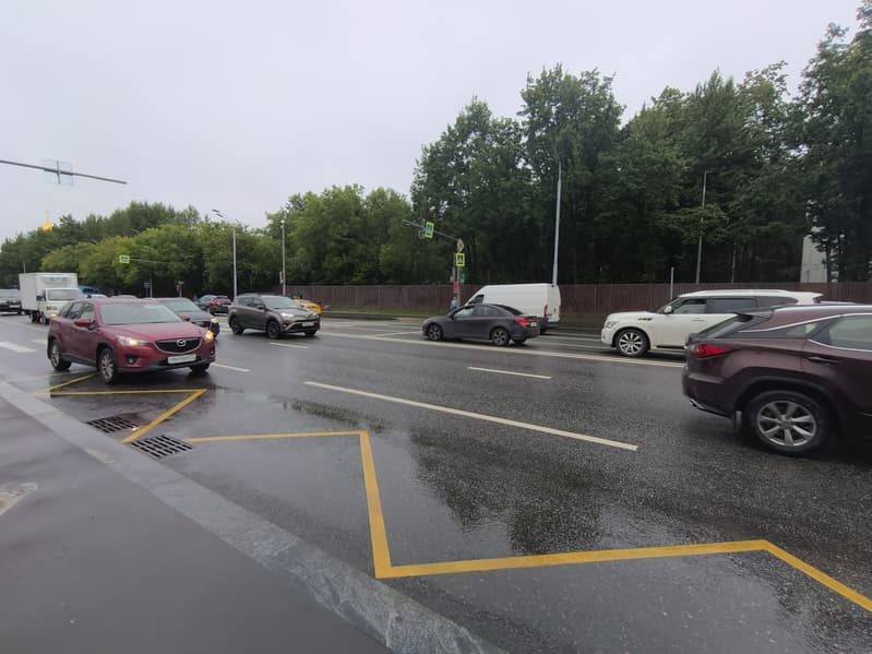 Если же, напротив, снимать не макро, а общий план с мелкими объектами (табличками, текстом и так далее) — детализации будет заметно не хватать. Ниже представлено то самое макро, фрагмент из которого вы видите выше, и снимок, на котором можно обратить внимание на читаемость номеров машин.