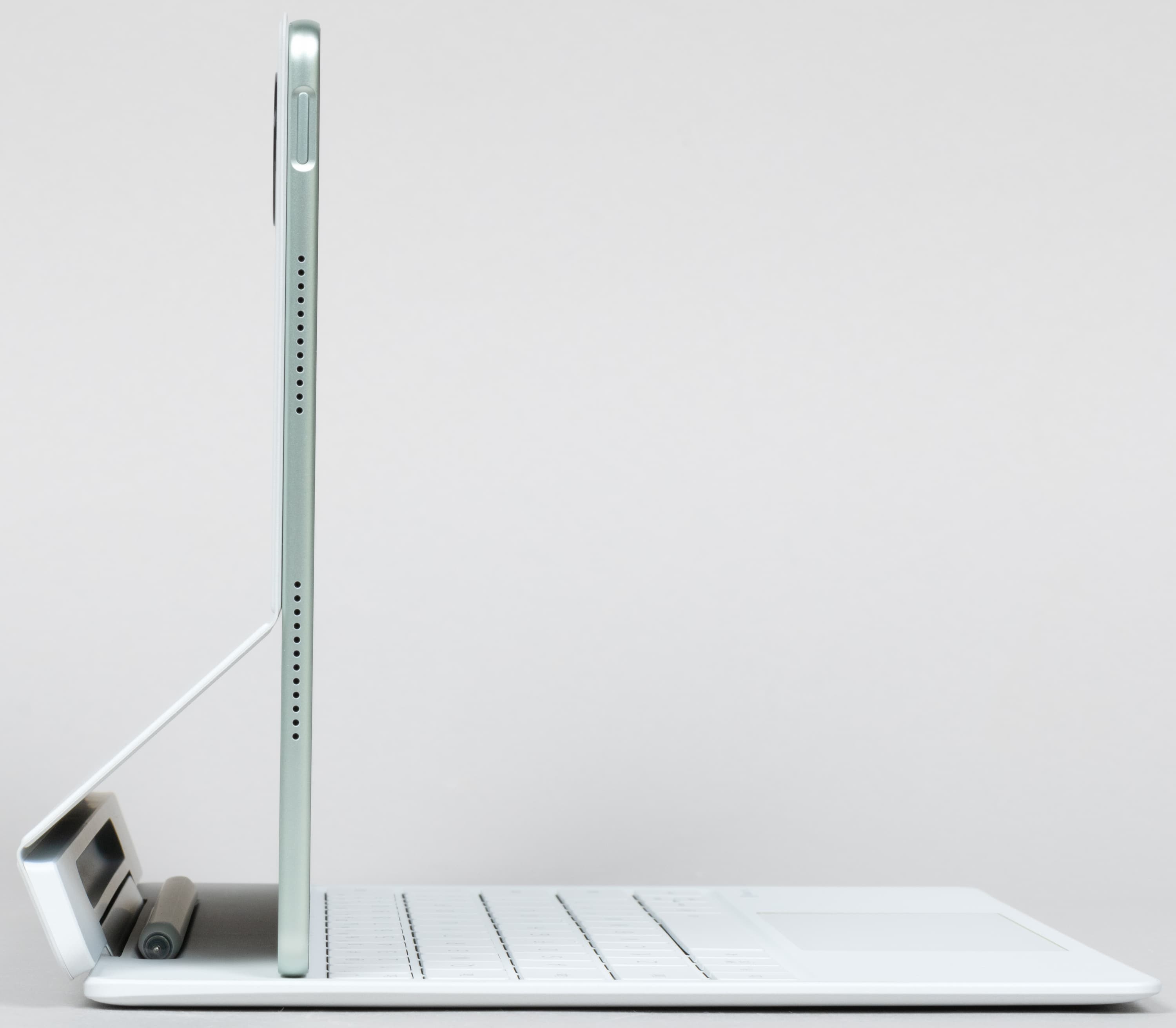 Ну и традиционно уже мы отмечаем идею с хранением стилуса: углубление в обложке-клавиатуре позволяет не только надежно разместить его и всегда иметь под рукой (без риска, что он отвалится и затеряется в сумке), но еще и не беспокоиться о его зарядке. В этой нише он постоянно подзаряжается.