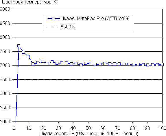 Напомним, что в случае OLED-экранов яркость фрагментов изображения динамично меняется в соответствии с характером выводимого изображения — чуть уменьшается для светлых в целом изображений. В итоге полученная зависимость яркости от оттенка (гамма-кривая), скорее всего, неточно соответствует гамма-кривой статичного изображения, так как измерения проводились при последовательном выводе оттенков серого почти на весь экран.