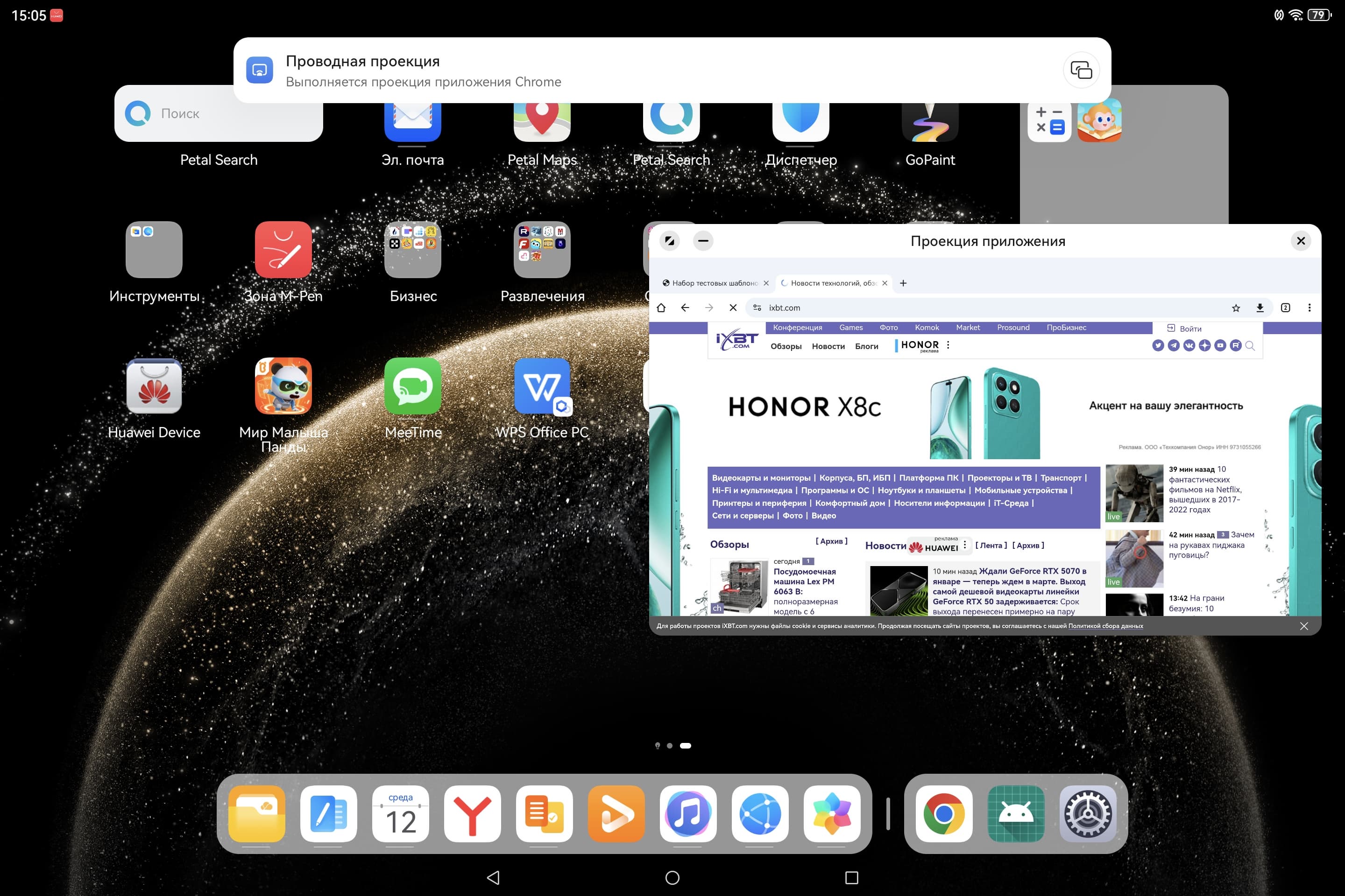 На экране планшета при этом в плавающем окне выводится функциональная копия окна приложения, а чтобы окно приложения на планшете не мешалось, его можно свернуть до иконки, прилипающей к краям экрана.