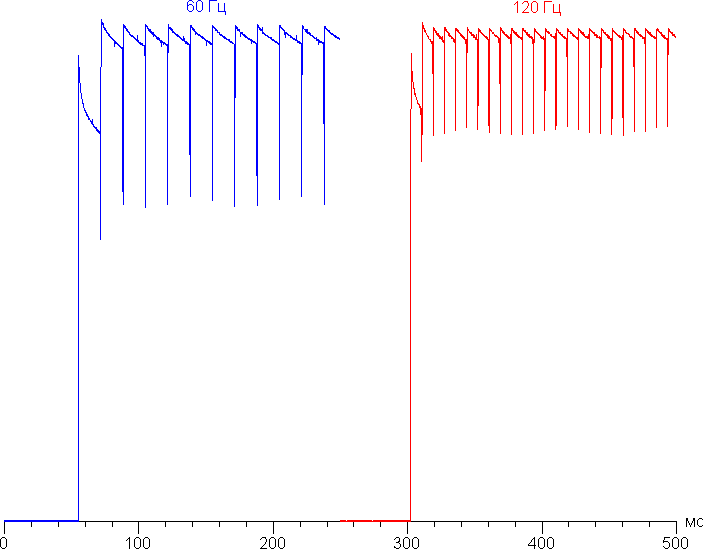 В режиме 120 Гц плавность прокрутки меню с настройками и т.д. заметно повышается. Посмотрим, изменится ли при этом характер модуляции. Режим с частотой обновления 120 Гц: