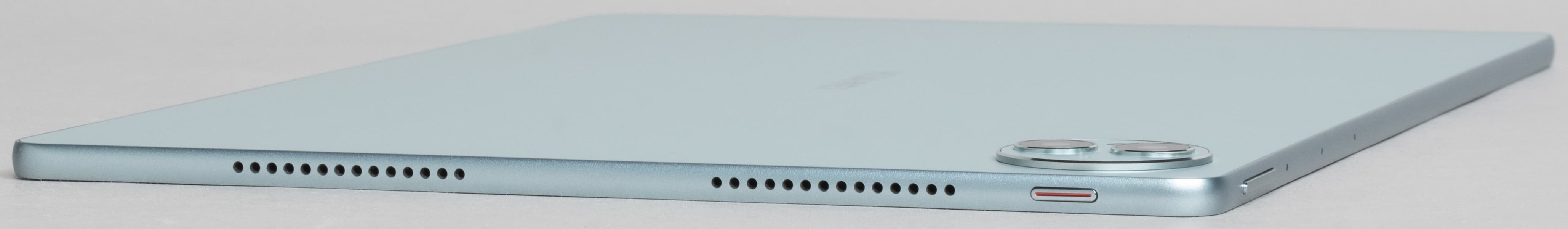 Справа, если держать устройство в портретной ориентации, мы видим решетки динамиков и разъем USB-C по центру. Слева — кнопку питания и еще два отверстия для выхода звука. Самих же динамиков — по три с каждой стороны. Вместе они обеспечивают достойное (по меркам данного типа устройств) звучание.