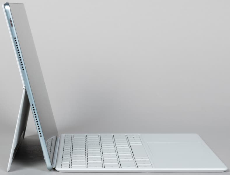 Меньшая масса обусловлена в первую очередь использованием стекловолокна (а не металла) для спинки корпуса. Кроме того, устройство очень тонкое, и это не символические десятые доли, а почти целый миллиметр — около 14% толщины iPad Air. Думаете, в реальном использовании это не ощутимо? Ощутимо, и еще как!