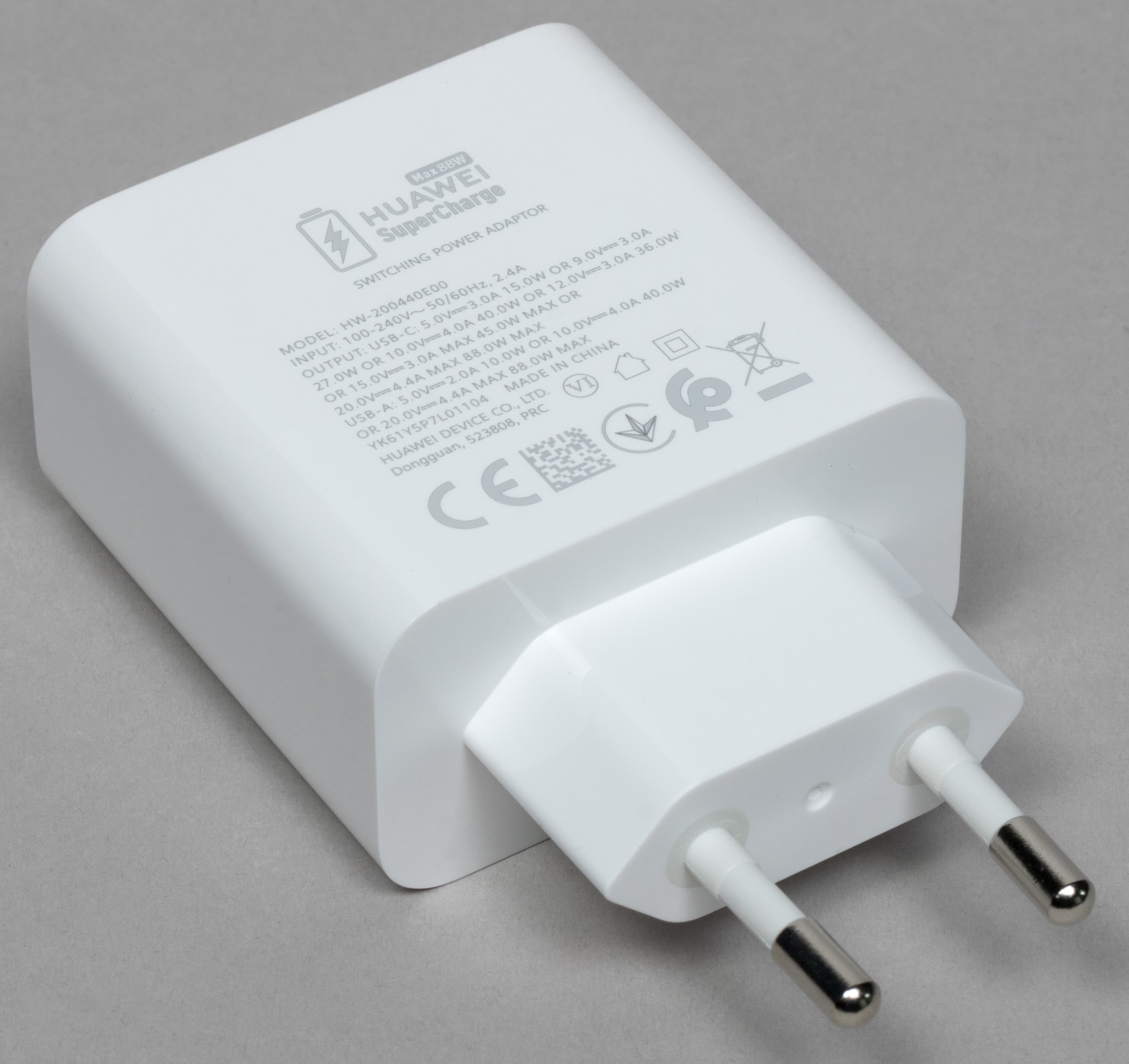 Во-первых, обратим внимание на мощность. Вместо 40-ваттных блоков у других планшетов Huawei здесь мы видим аж 88 Вт (20 В 4,4 А).