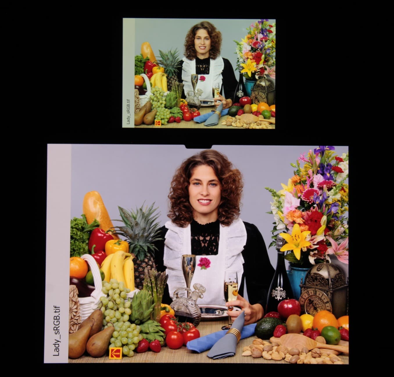 Отметим хорошую равномерность яркости и цветового тона белого поля. И тестовая картинка (профиль Обычные цвета):